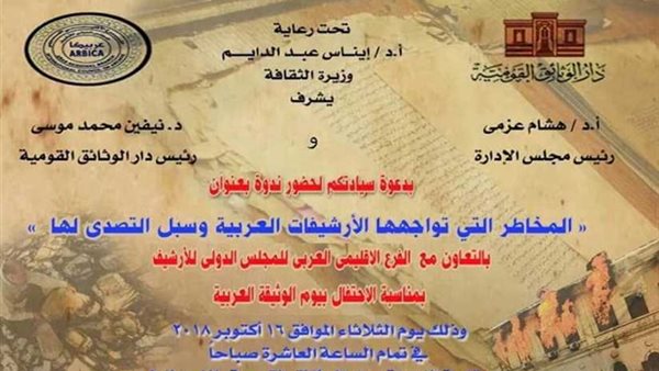 تحت رعاية الدكتورة إيناس عبد الدايم، وزيرة الثقافة، تقيم الهيئة العامة لدار الكتب والوثائق القومية ، برئاسة الدكتور هشام عزمي، ندوة بعنوان:" القصائد الوطنية المغناه " .