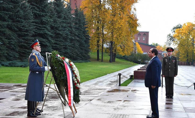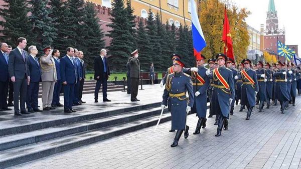 وقالت إن الرئيس عبد الفتاح السيسي استهل نشاطه صباح اليوم في ثاني أيام زيارة سيادته لروسيا، بزيارة النصب التذكاري بموسكو حيث قام سيادته بوضع إكليل من الزهور على قبر الجندي المجهول.