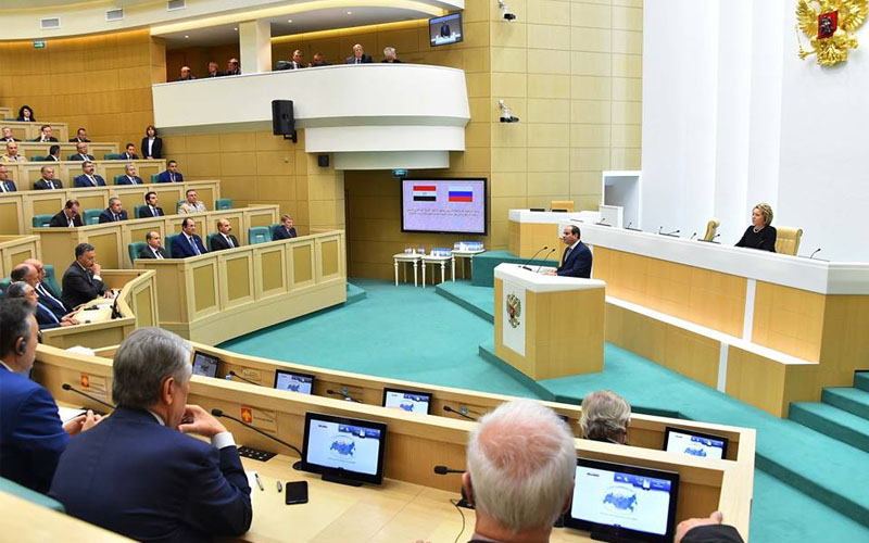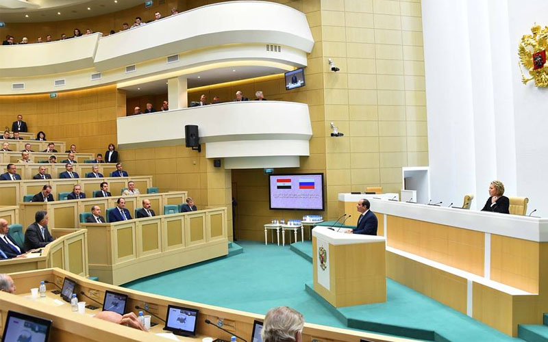 يعد الرئيس عبد الفتاح السيسي أول رئيس أجنبي يخاطب الشعب الروسي من داخل مجلس الفيدرالية.