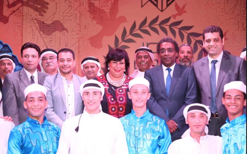 بعدها بدأ الاحتفال الفني بعزف للسلم الوطني، ثم ألقت وزيرة الثقافة كلمة أكدت خلالها على توجيه ودعم القيادة السياسية في نهجها بإيلاء الاهتمام بمنارات التنوير التي تمثل النموذج الأمثل لبناء الإنسان المصري.