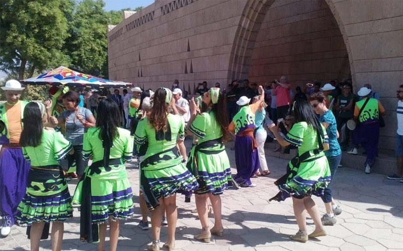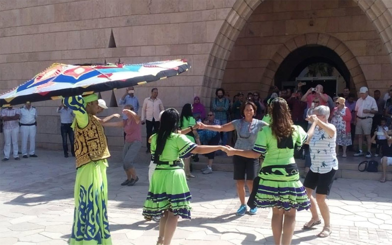 شارك السياح الذين زاروا المتحف النوبي صباح اليوم فرقة الحرية للفنون الشعبية الرقص على أنغام الدف والطبلة في زفة إسكندراني بلغات متعددة في إطار فعاليات مهرجان أسوان للفرق المصرية، احتفالا بتعامد الشمس على وجه رمسيس الثاني في ذكرى مولده خلال الفترة من 17 إلى 22 أكتوبر الجاري.
