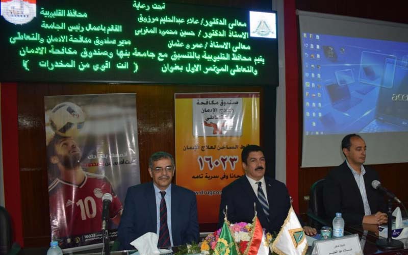 وأضاف عثمان أنه سيتم إنطلاق قافلة توعوية بـ 300 مدرسة بالقليوبية بالتعاون مع رابطة علاج الإدمان بالصندوق من ناحية اخرى شهد المؤتمر كلمات تحدث فيها كل من الدكتورة نرمين عدلي رئيس قسم الطب الشرعي بكلية الطب البشري ببنها، والدكتور اسماعيل بدر استاذ الصحة النفسية بكلية التربية، والدكتورة ايمان البيطار القائم بأعمال عميد كلية الطب، وعرض فيلم للتوعية بخطورة تعاطي المخدرات.