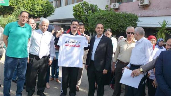 واختتم اللقاء بقيام المحافظ بتوزيع جوائز مالية على 10 من اللاعبين الفائزين في المارثون وأكد المحافظ أن مثل هذه المؤتمرات التى يشارك فيها الشباب هى لتوعيتهم بمخاطر المخدرات لأنهم هم أمل مصر، كما ناشد شباب كلية التربية الرياضية أن يكونوا سفراء للجامعة والمجتمع كله ضد هذا البلاء لأن الرياضة هي أقوى سلاح قادر أن يجعل الشخص يبتعد عن كل ما هو ضار ويقترب من كل ماهو مفيد لصحته وأخلاقه.