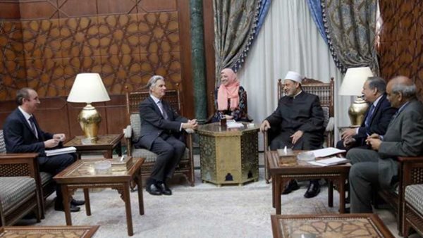 وهنأ الإمام الأكبر، السفير البريطاني بمناسبة بدء مهمته الدبلوماسية، خلفًا للسفير السابق، جون كاسن، معربًا عن خالص تمنياته له بالتوفيق والنجاح في عمله بمصر.