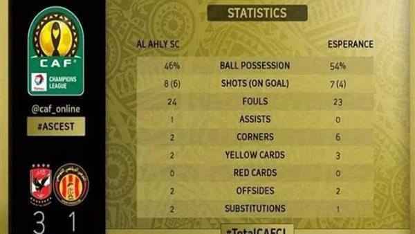 احصائيات ذهاب نهائي أبطال إفريقيا بين الأهلي والترجي
