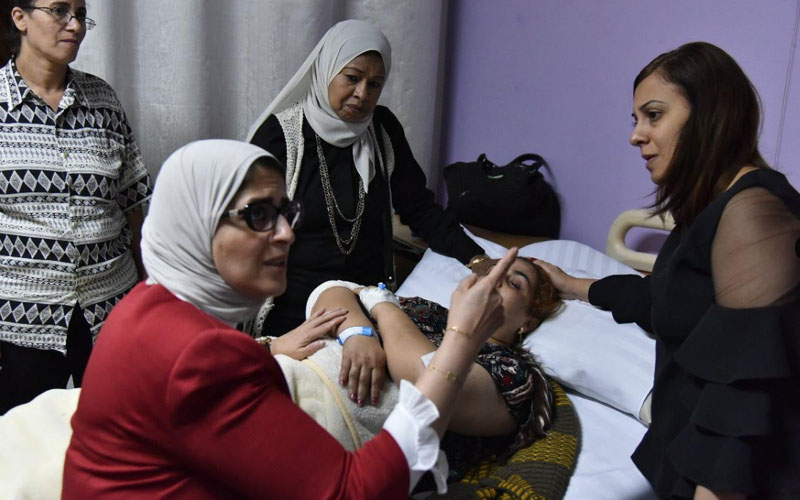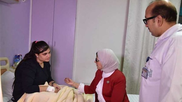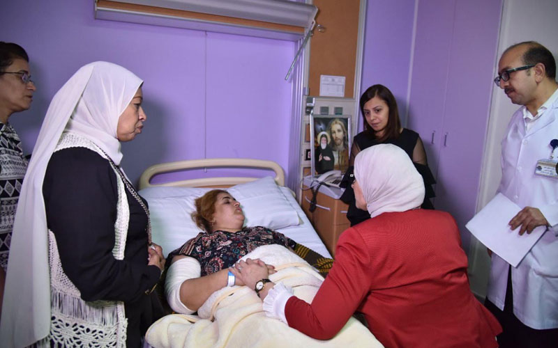 خلال زيارة وزيرة الصحة مصابي حادث المنيا بمستشفى الشيخ زايد: المصابون في تحسن مستمر