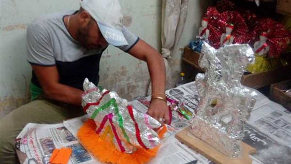 وقال ما زال الإقبال معقول رغم زيادة سعر الخامات وتبدأ الأسعار من 20 وحتى 200 جنيه ولَم تتمكن الأشكال البلاستيكية القادمة من الصين من القضاء على الحصان والعروسة الحلاوة البلدي حتى الآن.