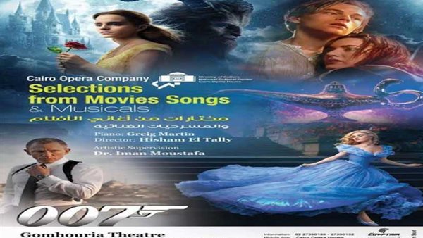 يتضمن برنامج الحفلين مختارات من أشهر المسرحيات الغنائية منها "قطط، صوت الموسيقى، الجميلة والوحش والبؤساء"، بالإضافة إلى باقة من أجمل أغاني الأفلام العالمية منها "جيمس بوند، تيتانيك، أنستازيا، مولان روج، الأب الروحي، قصة حب والجمال النائم" وذلك بأداء نجوم فرقة أوبرا القاهرة وهم"إيمان مصطفي، رضا الوكيل، مصطفى محمد، رشا طلعت، جولي فيظي، وليد كريم، عماد عادل، أمينة خيرت، جيهان فايد، إلهامي أمين، نسرين رشدي، تامر توفيق، نورستا الميرغني، أسامة علي، برهان الدين فاروق، مروة حسن وأسامة جمال".