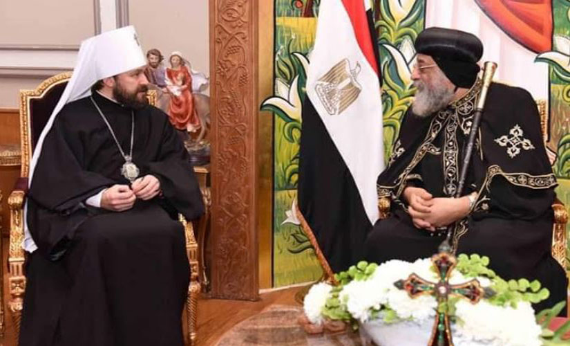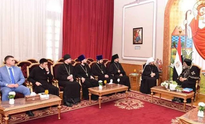 استقبل قداسة البابا تواضروس الثاني بالمقر البابوي بالكاتدرائية المرقسية بالعباسية اليوم المطران إيلاريون مبعوث غبطة البطريرك كيريل بطريرك موسكو وسائر روسيا والوفد المرافق له.