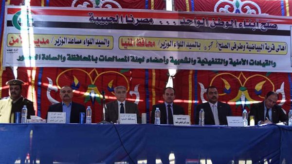 أشاد المحافظ خلال كلمته بالجهود المبذولة من قبل وزارة الداخلية متمثلة في مديرية أمن المنيا ولجان المصالحات وكبار العائلات في القضاء على عادة الثأر خاصة في صعيد مصر وحقن الدماء ودعم مبادرات الصلح بين العائلات المتخاصمة من اجل القضاء على الخلافات وتحقيق الاستقرار والأمن والأمان داخل المجتمع.