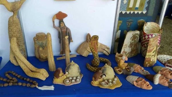 وعرضت جمعية الأسر المنتجة بالوادى الجديد منتجات من مخلفات النخيل وشجر الدوم وتشمل صناعات تماثيل وبيت واحاتى ودولاب فخارى من مخلفات شجر الدوم وأشكال حيوانات مختلفة وأشكال فنيه للديكور ومن النخيل من مخلفات نوى التمر إكسسوارات العقد والحلقان والتجميل ومن سعف النخيل مرواح ومنشآت وقفف للتسوق بها ومن الجريد مقالم وأرابيسك وأدوات مطبخ وستائر وسبح وميداليات.