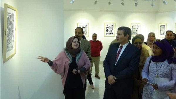 23 لوحة فنية بمعرض "رؤية خطية" لــ"تربية فنية المنيا"