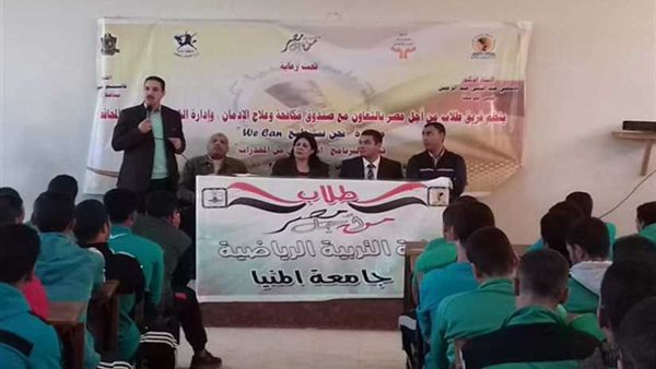 أطلق فريق "طلاب من أجل مصر" بجامعة المنيا تحت رعاية الدكتور مصطفى عبد النبي رئيس الجامعة ، وبالتعاون مع صندوق مكافحة الإدمان وإدارة الشباب والطلاب بالمحافظة، والإدارة العامة لرعاية الطلاب بالجامعة أولى فعاليات مبادرة "نحن نستطيع" التابعة لبرنامج (أنت أقوى من المخدرات) التى تستهدف توعية الشباب بمخاطر الإدمان، وطرق الوقاية والعلاج منه داخل جامعة المنيا، خلال الفترة من 25 حتى 30 نوفمبر الجارى، حيث أُقيمت أولى فعالياتها اليوم بتنظيم ندوتين بكليتي التربية الفنية، والتربية الرياضية بالجامعة.
