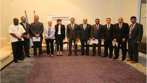سلمت كريستيانا بالمر السكرتيرة التنفيذية لاتفاقية الأطراف للتنوع البيولوجي شهادات تقدير للقيادات الأمنية والعناصر التي كانت أحد عوامل نجاح المؤتمر، وذلك بحضور الدكتورة ياسمين فؤاد وزيرة البيئة.