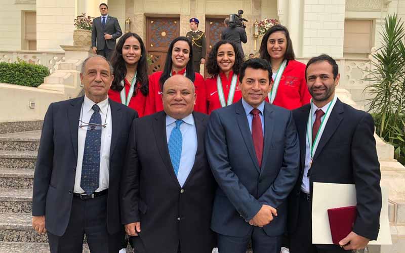 ومنح الرئيس الأوسمة الرياضية للأبطال الرياضيين والأجهزة الفنية ، كما التقط منتخب الإسكواش الصور التذكارية بقصر الاتحادية.