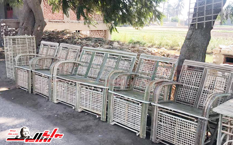 "كرسي وسرير".. الفيومي يحول جريد النخيل لأثاث منزلية بـ"الغنايم".. (صور)