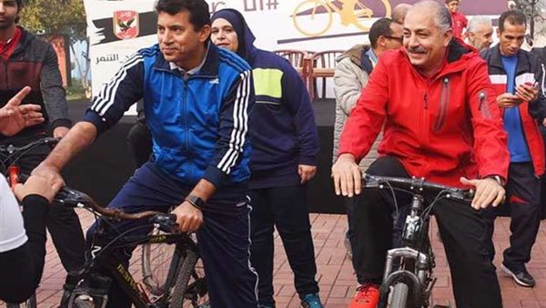 وزير الشباب يشارك في «ماراثون» الأهلي للدراجات في حملته ضد «التنمر»