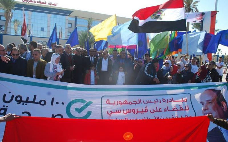 هذا.. وقد تم إطلاق إشارة الحملة بماراثون رياضي نظمته مديرية الشباب والرياضة من الصالة المغطاة وحتى المدينة الشبابية الدولية بالعريش.. ثم لقاء موسع مع الشباب للحث على المشاركة في الحملة والكشف الطبي في نقطتين متحركتين داخل المدينة الشبابية إحداهما للرجال والشباب والأخرى للسيدات والفتيات.
