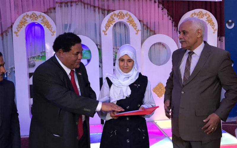وعرض مدير الإدارة التعليمية خلال الحفل الجهود التي حققتها ومنها حصول إحدى الطالبات على المركز الأول على مستوى المحافظة في الشهادة الإعدادية والمركز الأول في الطالب المثالي للمرحلة الإعدادية والثانوية، والمركز الأول في الإلقاء على مستوى الجمهورية.