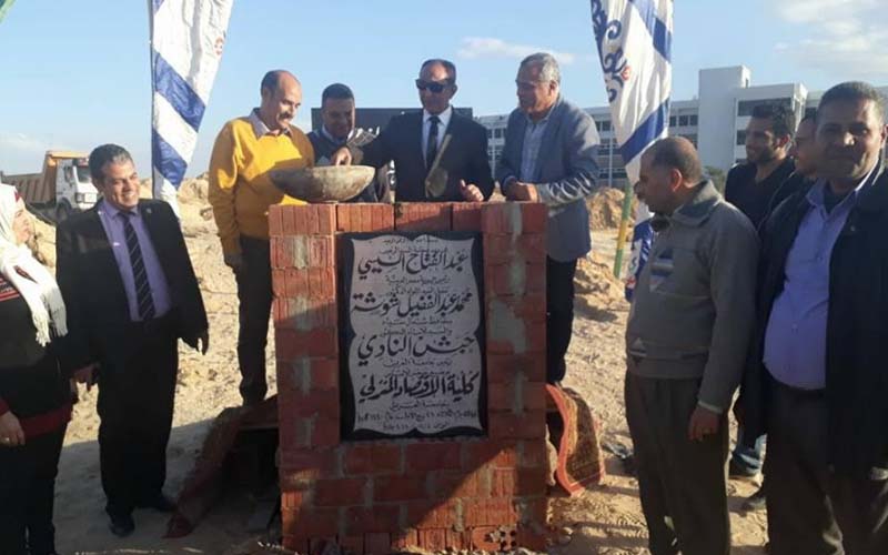 قام الدكتور حبش النادي رئيس جامعة العريش يرافقه المهندس مدحت فايق مدير الادارة الهندسية، المهندس إبراهيم حلمى زهران مدير تنفيذ المشروعات، والمهندسون: خالد عبد الهادى وحسن صلاح الدين وإبراهيم سعيد التربانى استشاريو المشروع.. بوضع حجر الأساس لاقامة مبنى كلية الاقتصاد المنزلى في الحرم الجامعى بضاحية السلام بالعريش.