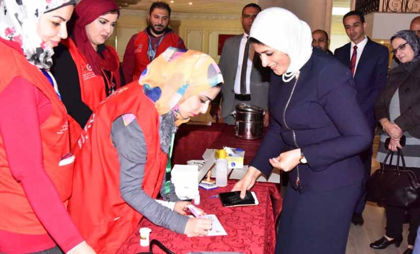 أجرت الدكتورة هالة زايد، وزيرة الصحة والسكان، الفحوصات الخاصة بمبادرة الرئيس عبدالفتاح السيسي، للقضاء على فيروس "سي"، الكشف عن الأمراض غير السارية بنقطة الفحص الموجودة بمقر المعهد القومي للتدريب، التابع للوزارة.