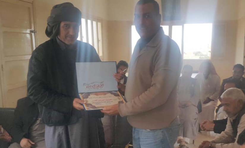 وفي نهاية اللقاء أهدت أمانة الحزب بالمركز شهادة تقدير للشيخ محمود أنور عبدالقادر، من عواقل القرية.