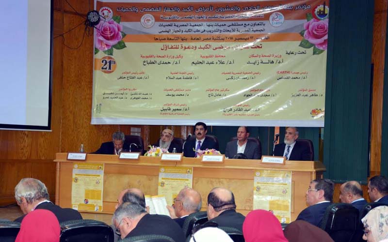 وأشار المحافظ إلى أنه سعيد بحضور هذا المحفل العلمي الذي يشارك فيه أساتذة الكبد العظماء موجها سيادته الشكر لمديرية الصحة بالقليوبية على جهودها في حملة الكشف عن فيروس سي والأمراض غير السارية والوصول لنتيجة مرضية والوصول للأعداد المستهدفة وهذه بداية لوجود سجلات طبية للمرضي ووضع الشعب المصري على خطة للتأمين الصحي الشامل مطالباً القائمين على المؤتمر بإقامة العديد من الندوات والمؤتمرات ليشارك بها الأطباء الشباب ليتم نقل الخبرات والنهوض بالمنظومة الصحية خصوصاً في مجال زراعة الكبد.