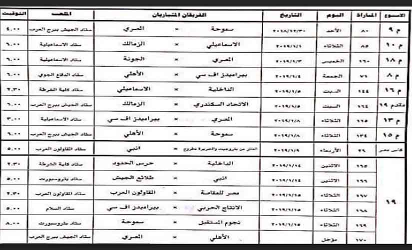 أعلنت لجنة المسابقات بالاتحاد المصري لكرة القدم المواعيد الجديدة للمباريات المؤجلة، في مسابقة الدوري الممتاز، إضافة إلى مواعيد الجولتين 19، 20 من المسابقة.
