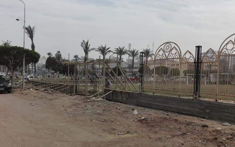 بدء أعمال تركيب السور الخاص بحديقة الفرما بمحيط نادي المعارف في بورسعيد