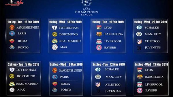 انفوجراف| مواعيد مباريات الذهاب والإياب لدور ثمن النهائي لدوري أبطال أوروبا