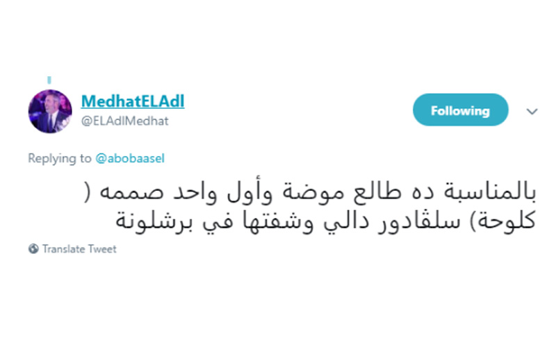 كما دافع المنتج والسيناريست مدحت العدل عن إطلالات صلاح، التي وصفها البعض بأنها مثيرة للجدل، من خلال "تغريدة" عبر تويتر، قال فيها: "بالمناسبة ده طالع موضة وأول واحد صممه (كلوحة) سلڤادور دالي، وشفتها في برشلونة".