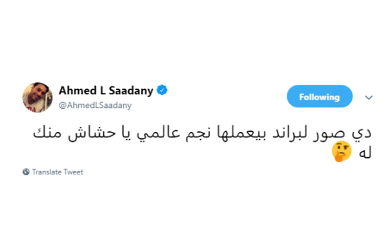 ورد الفنان الشاب أحمد السعدني، نجل الفنان القدير صلاح السعدني، على الانتقادات التي طالت صلاح، وذلك في تغريدة عبر حسابه بموقع تويتر، قال فيها: "دي صور لبراند بيعملها نجم عالمي يا حشاش منك له".