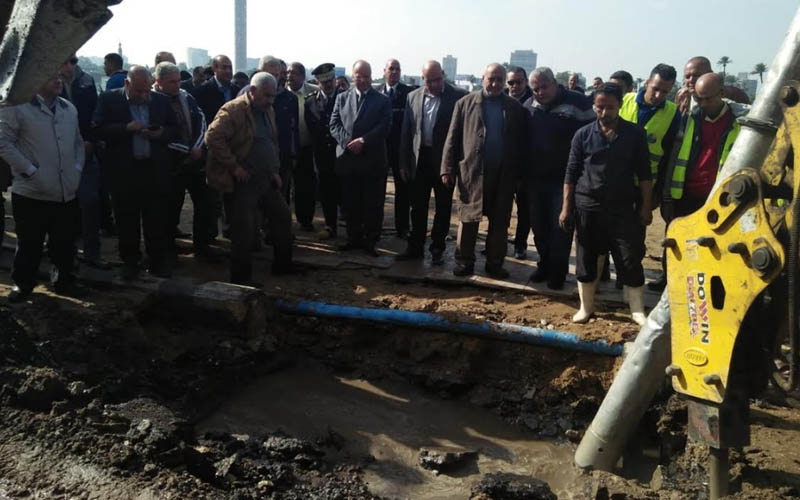من جانبه تفقد محافظ القاهرة، اللواء خالد عبد العال، أعمال إصلاح ماسورة المياه، واطمأن على أعمال الإصلاح، حيث تواجد مسؤولو شركات المياه والصرف الصحي، والقيام بشفط المياه الناتجة عن كسر ماسورة مياه خط 800، والبدء في الحفر للوصول للماسورة المكسورة وعمل الإحلال والتجديد لها.