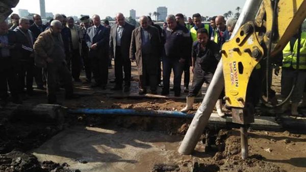 بدء حفر موقع انفجار ماسورة الكورنيش والمحافظ يتفقد