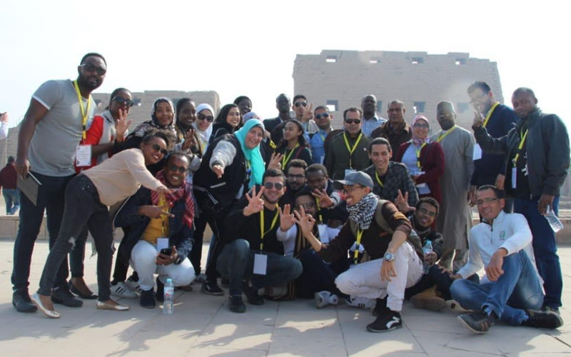 وتجول الشباب العربي والإفريقي داخل معابد الكرنك والأقصر، وأعرب الشباب الإفريقي والعربي عن سعادته وإعجابه بالآثار التاريخية الفرعونية.
