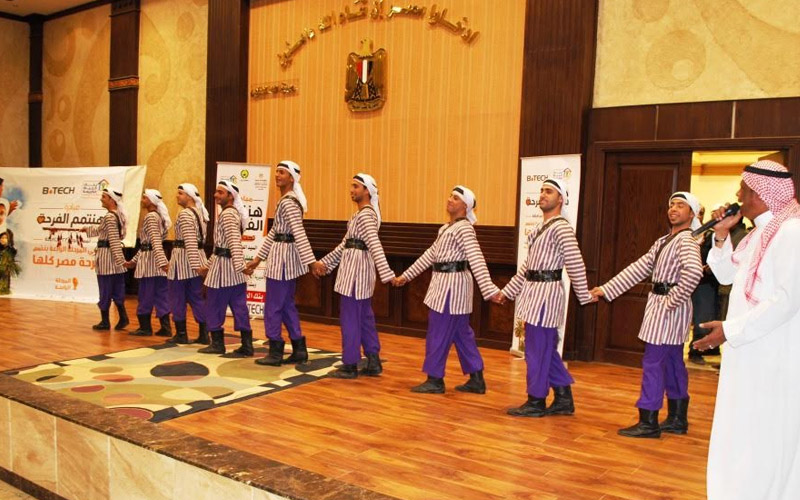 جاء ذلك فى العرض الذى قدمته الفرقة على هامش مبادرة "هنتمم الفرحة " التى أقيمت اليوم فى المدينة الشبابية الدولية بالعريش ونفذتها شركة بى تك للأجهزة الكهربائية والإلكترونية بالتعاون مع بنك الحياة الكريمة ضمن فعاليات توزيع الأجهزة الكهربائية على 85 عروسًا، بحضور اللواء دكتور محمد عبد الفضيل شوشة محافظ شمال سيناء ، اللواء وليد المعداوى رئيس مركز ومدينة العريش، سعدية محمود مدير عام التضامن الإجتماعى ، أحمد خيرى ممثل شركة بى تك ، وأحمد أبو القاسم ممثل بنك الحياة الكريمة.