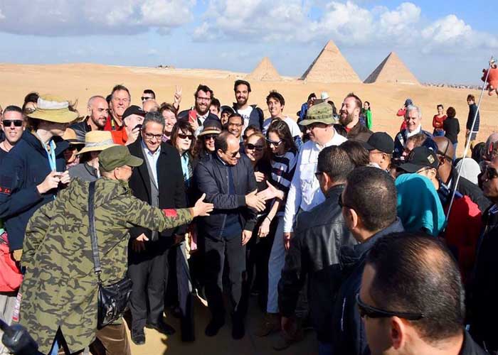 كما تفقد الرئيس السيسي مشروع تطوير هضبة الأهرام، الذي يهدف إلى تحسين الخدمات لزائري أهرامات الجيزة وتطوير منظومة الإضاءة والتأمين الإلكتروني بها، ما يعمل على استعادة المنطقة الأثرية لرونقها بالشكل الذي يليق بالحضارة المصرية القديمة، حيث سيتضمن نقل مدخل الهضبة الحالي إلى طريق الفيوم، بالإضافة إلى استحداث مركز للزوار لخدمة السائحين ومنطقة خدمية ومكتب للاستعلامات ومباني إدارية وتعليمية لنشر الوعي الأثري.