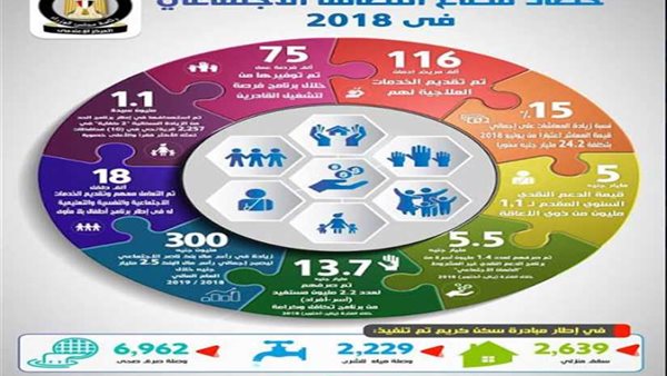 انطلاقًا من حرص المركز الإعلامي لمجلس الوزراء على تسليط الضوء على الجهود المبذولة من قبل الدولة لأبرز المشروعات التي تم تنفيذها في قطاع التضامن الاجتماعي، وذلك خلال عام 2018، والتي يأتي على رأسها تخصيص وزارة التضامن الاجتماعي دعم 13.7 مليار جنيه تم صرفهم لعدد 2.2 مليون مستفيد (أسر-أفراد) من برنامج تكافل وكرامة.