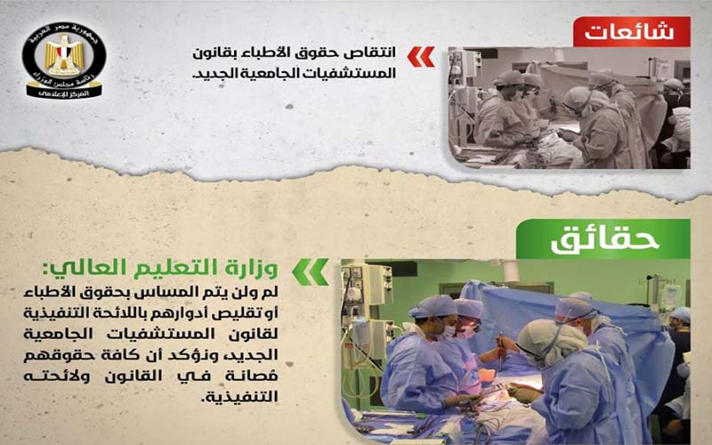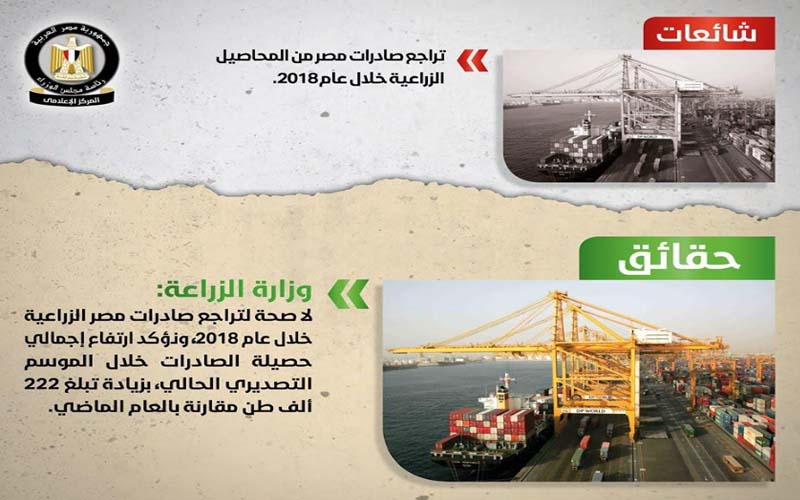 وتضمنت الشائعات، استيراد الحكومة شحنات قمح مسرطنة وتراجع صادرات مصر من المحاصيل الزراعية خلال عام 2018 وإلغاء القصة فى اللغتين العربية والإنجليزية للصف الأول الثانوى وتسليم الطالب تابلت بديل مجانًا فى حال ضياع جهازه الشخصى وإلغاء إجازة يوم السبت للمعلمين بالمدارس وتعيين 36 مستشارًا جديدًا بوزارة التربية والتعليم وإجراء امتحانات دور ثالث للراسبين بالجامعات وانتقاص حقوق الأطباء بقانون المستشفيات الجامعية الجديد وفرض ضريبة عقارية على وحدات الإسكان الاجتماعى وبيع هيئة السكك الحديدية للأراضى التابعة لها.