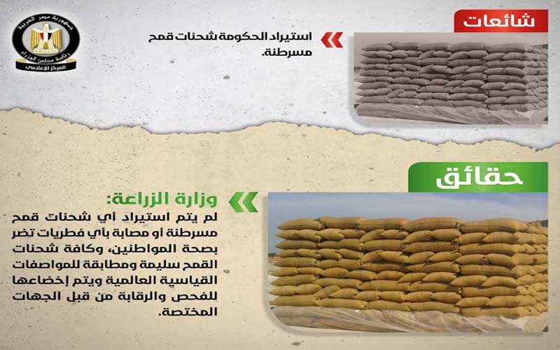 "الحكومة" توضح حقائق 10 شائعات أبرزها القمح المسرطن.. إنفوجراف