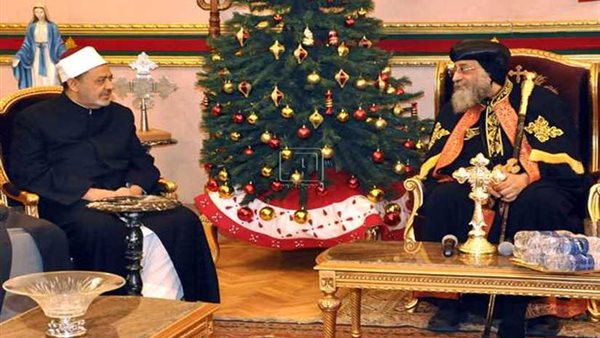 قدم فضيلة الإمام الأكبر الدكتور أحمد الطيب شيخ الأزهر الشريف، ووزير الأوقاف الدكتور محمد مختار جمعة، والدكتور شوقي علام مفتي الجمهورية، اليوم الأربعاء، التهنئة لقداسة البابا تواضروس بابا الإسكندرية وبطريرك الكرازة المرقسية وسائر قيادات الكنيسة المصرية بالعام الميلادي الجديد، وذلك خلال الزيارة التي قام بها الإمام الأكبر إلى مقر الكاتدرائية بالعباسية.