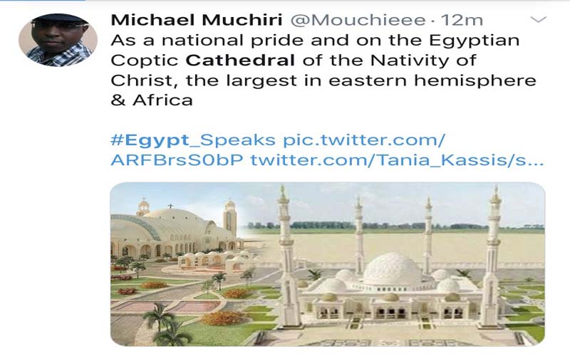 وقال مغرد من كينيا إنه يشعر بالفخر الوطني لافتتاح الكاتدرائية المصرية لميلاد المسيح وهي الأكبر في نصف الكرة الشرقي وأفريقيا .