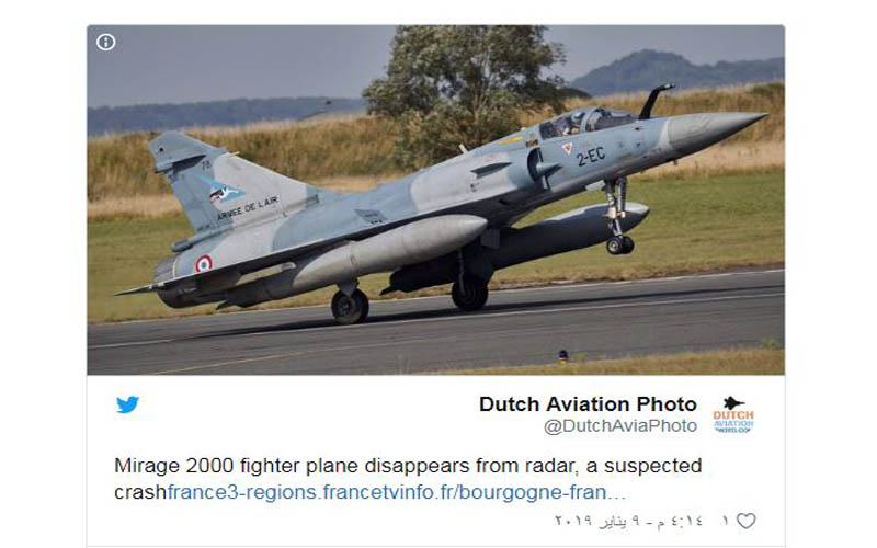 وتمتلك القوات الجوية الفرنسية مئات الطائرات المقاتلة طراز "ميراج 2000"، التي دخلت الخدمة منذ عام 1979، واختفت إحداها، اليوم الأربعاء.