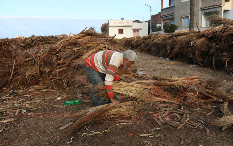 كالتوأم ورفيقا طريق طوال العمر، ومنذ أن عرف كل منهما تفاصيل وجه الآخر، وتعديهم العقد الخامس من العمر، مازال الأخوان يستيقظان يوميًا لجمع بقايا النخيل من "السباطة" وهي الجزء الفارغ من حمل ثمار البلح في النخيل، بيدين عاريتين، يقومان بنزع بقايا الثمار المتعفن، وتنظيف "السباطة" وجمعها، لبيعها لصانعي "مكانس البلح".