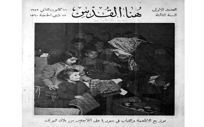 وفي 11 يناير من عام 1942، نشرت صحيفة “هنا القدس” صورة على صفحتها الرئيسية، تُظهر سيدات سوريات يوزعن الثياب لأطفال يونانيين.