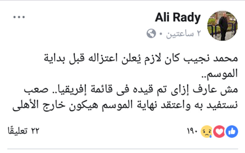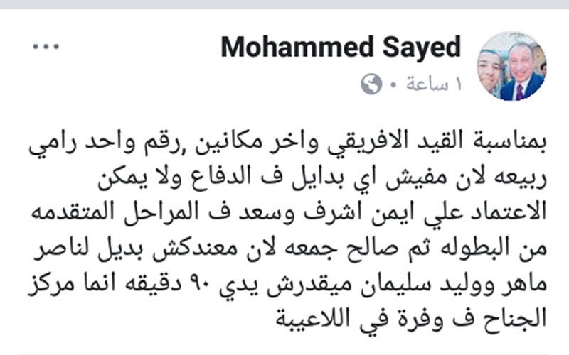 رصدت بوابة روزاليوسف تعليق رواد مواقع التواصل الاجتماعي الفيس بوك على أبرز الأحداث الرياضية حسب وجهة نظر كل واحد، لذلك قمنا بتسليط الضوء على أبرز هذه الآراء اليوم الإثنين الموافق 14 يناير 2019