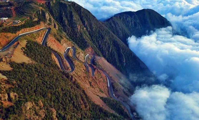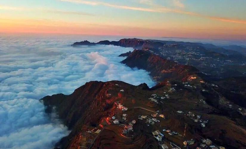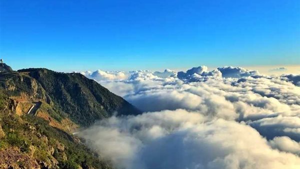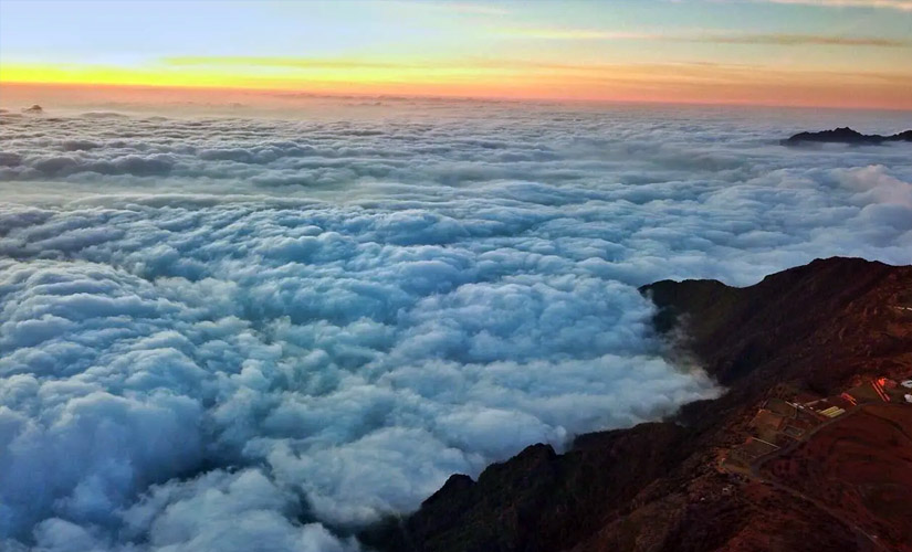 مشهد بديعي ونادر على قمم جبال السودة الشاهقة في منطقة عسير، رسمته سحب شتوية عانقت الجبال ذات الارتفاع الأعلى في السعودية، والتي تصل قمتها إلى 3015 متراً عن سطح البحر.