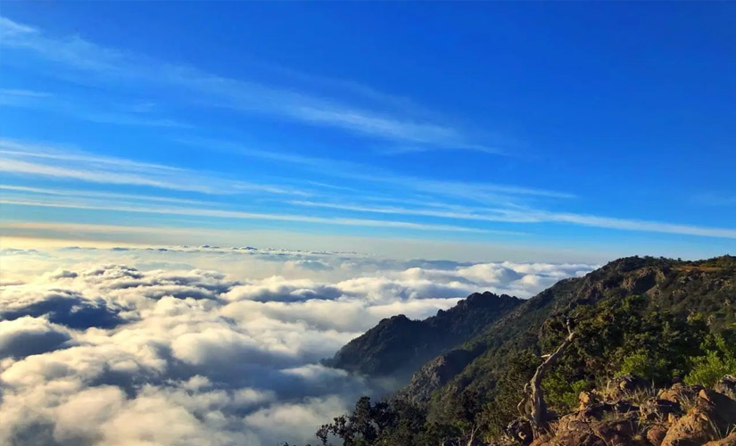 شاهد.. السحب تعانق قمم جبال السودة السعودية