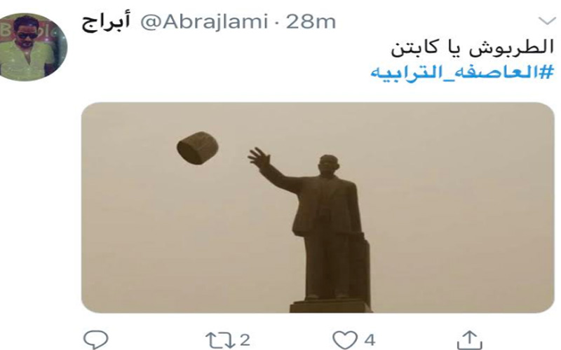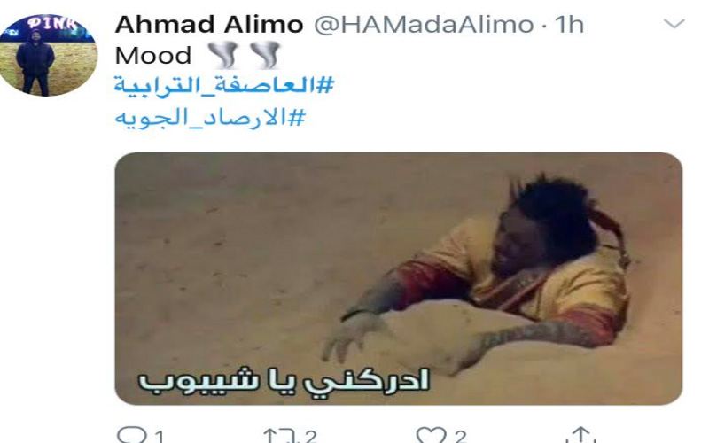 تصدر هاشتاج العاصفة الترابية موقع التواصل الاجتماعي "تويتر" وانهالت التعليقات المضحكة من قبل المصريين.