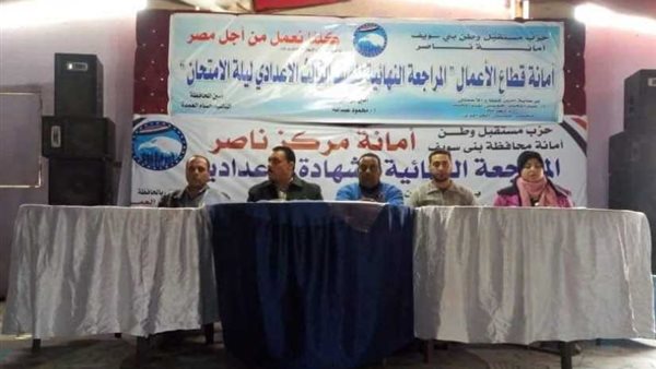 نظم حزب مستقبل وطن، برئاسة المهندس أشرف رشاد الشريف، بمحافظة بني سويف، فعاليات المراجعة النهائية لطلاب وطالبات الصف الثالث الإعدادي، في مركز ناصر.